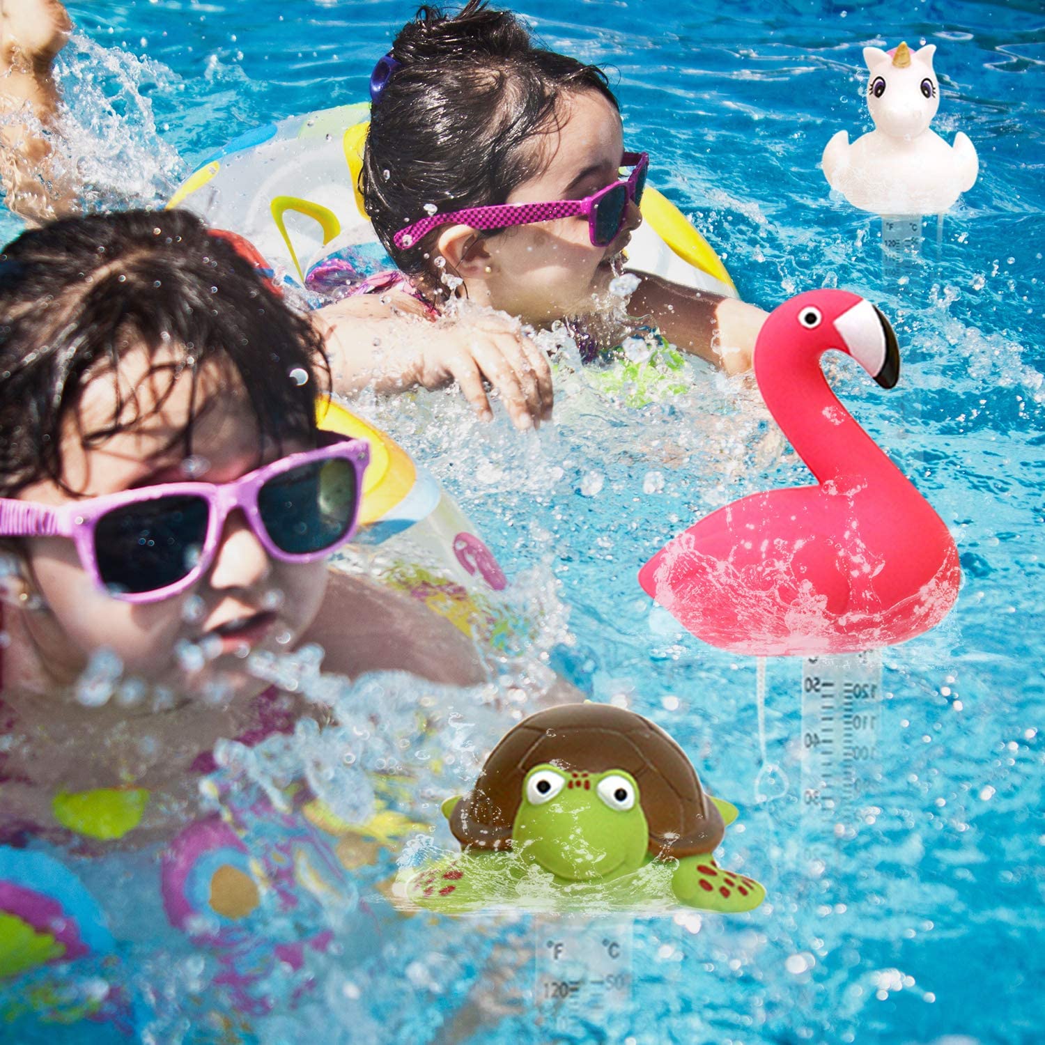 Customized Flamingo Pool Floater PVC Floating Swimming Pool Digital Thermometer